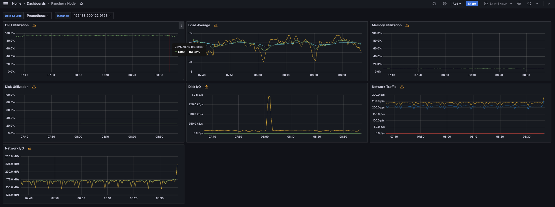 - Node Exporter:DaemonSet部署,监控CPU/内存。