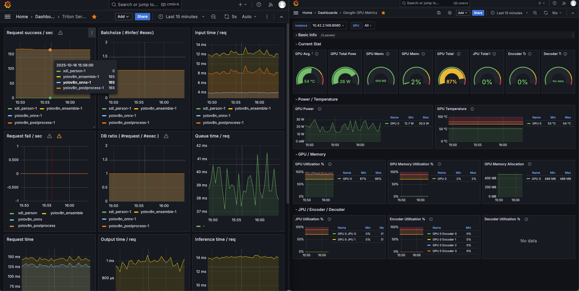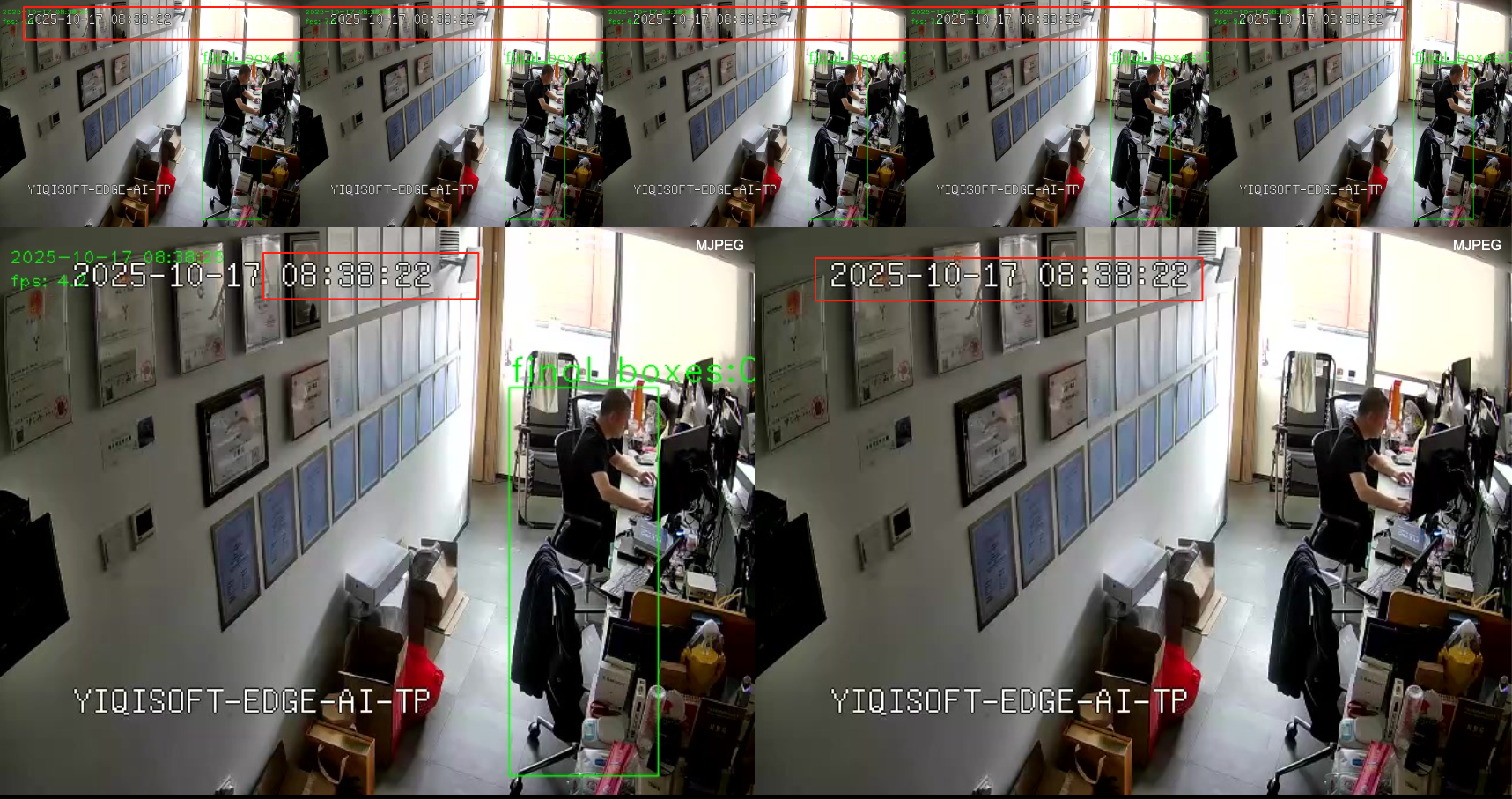 - 多路(取决于每路视频fps):稳定150fps,GPU 80%(边缘限)。