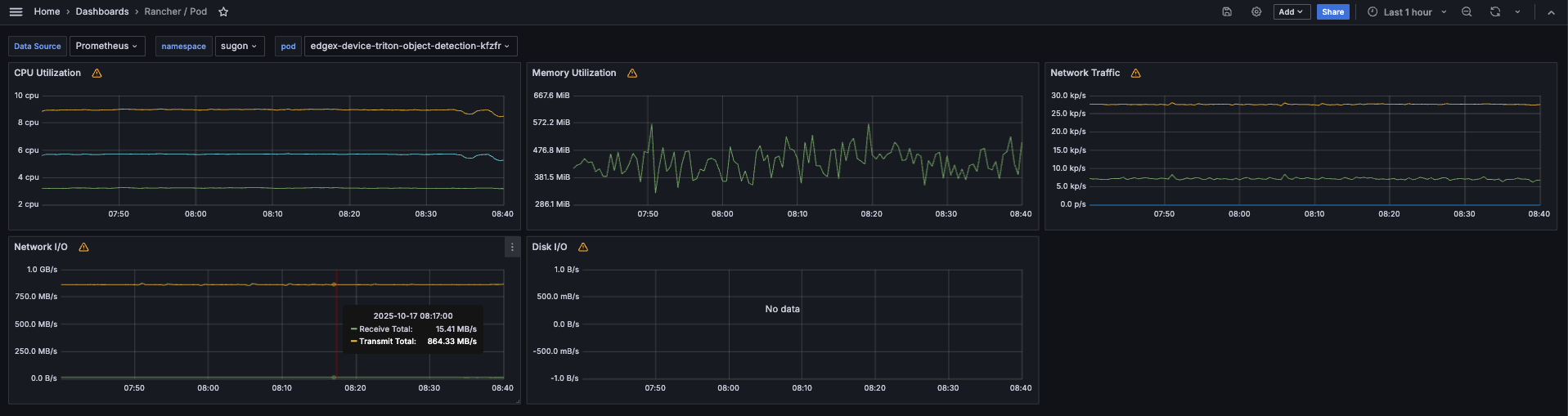 自定义Dashboard:Node监控、GPU利用率、Triton吞吐。边缘限制:轻量Prometheus,存储PVC<10GB。